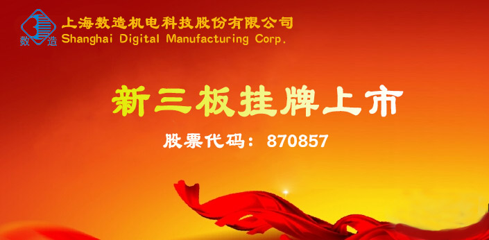 2017年1月23日,上海數(shù)造機(jī)電科技股份有限公司在全國(guó)中小企業(yè)股轉(zhuǎn)系統(tǒng)(新三板)獲準(zhǔn)掛牌,證券簡(jiǎn)稱(chēng):數(shù)造科技,證券代碼:870857。全國(guó)中小企業(yè)股份轉(zhuǎn)讓系統(tǒng)(新三板)是經(jīng)國(guó)務(wù)院批準(zhǔn),依據(jù)證券法設(shè)立的全國(guó)性證券交易場(chǎng)所,是繼上海證券交易所、深圳證券交易所之后第三家全國(guó)性證券交易場(chǎng)所。