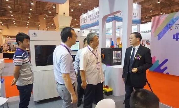 本屆3D打印節(jié)展會(huì)主辦方青島三迪時(shí)空董事長李培學(xué)陪同青島市政協(xié)副主席、廣州增材協(xié)會(huì)會(huì)長參觀了數(shù)造展位現(xiàn)場。