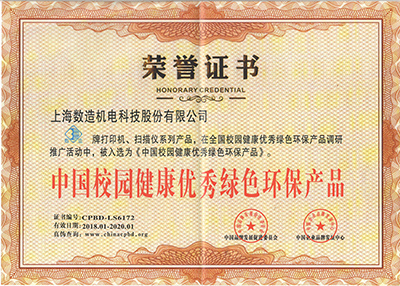 2018年1月,上海數(shù)造機(jī)電科技股份有限公司研發(fā)生產(chǎn)的3D打印機(jī)和三維掃描儀在全國(guó)校園健康優(yōu)秀綠色環(huán)保產(chǎn)品調(diào)研推廣活動(dòng)中,被入選為《中國(guó)校園健康優(yōu)秀綠色環(huán)保產(chǎn)品》。