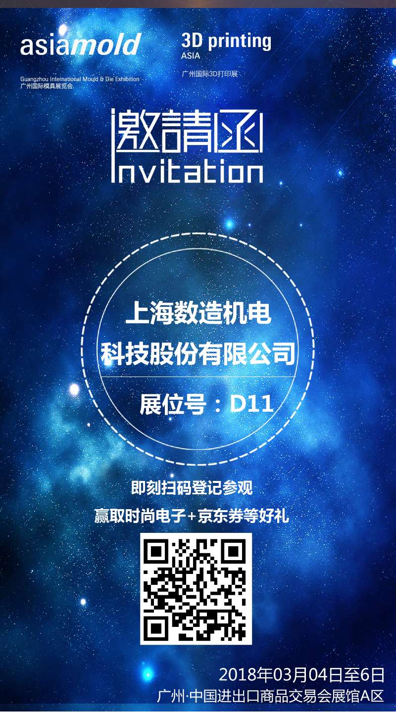 上海數(shù)造將亮相第十二屆廣州國(guó)際模具展覽會(huì)(Asiamold),上海數(shù)造的發(fā)展道路離不開您的支持與肯定。2018年3月4日-6日,廣州.中國(guó)進(jìn)出口商品交易會(huì)展館......