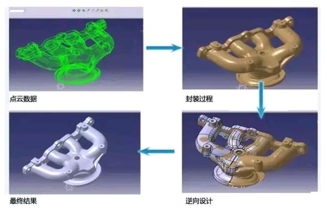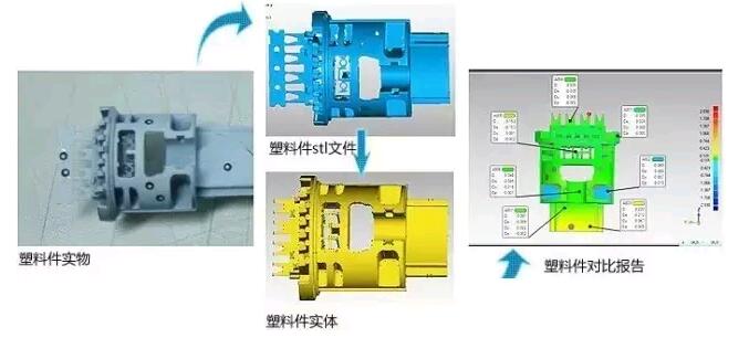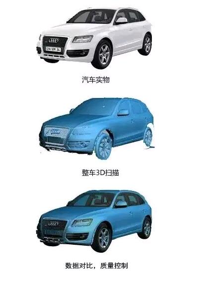 三維掃描系統能在極短時間內,對結構復雜、曲面較多的配件或者難以成型的大型汽車樣件,進行快速掃描,制造出高精細度高的產品。利用三維數據可以對原有數模進行分析檢測,最大限度保證了配件及模具的質量;利用三維數據進行逆向建模,可以提高設計師的工作效率和設計質量,從而保證模具的生產時間。